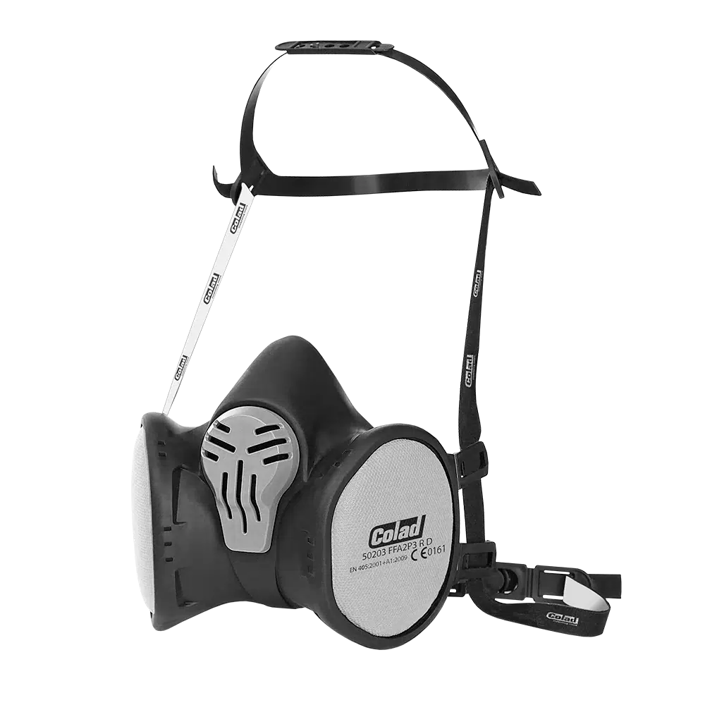 La máscara para pintar A2P3 de Colad ofrece una protección óptima contra los peligros de la inhalación de isocianato, pintura o vapor orgánico. También protege al usuario de las partículas de polvo. La mascarilla tiene un ajuste perfecto alrededor de la nariz y la boca y tiene correas ajustables para mayor comodidad.