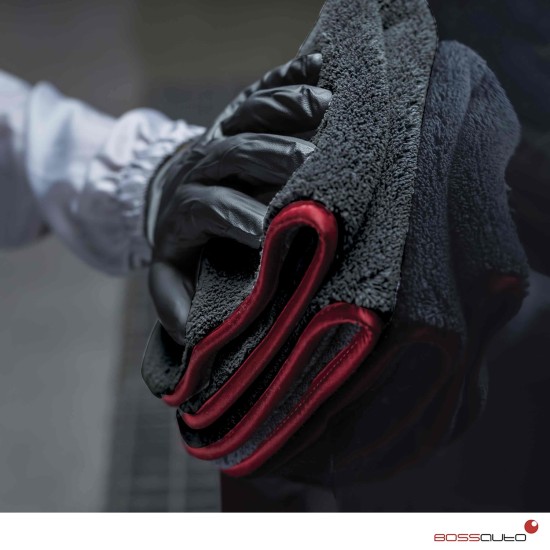 Paño de microfibra BOSSAUTO con pelo extremadamente largo en ambas caras para una máxima eficacia. Extraordinaria absorción de los productos de pulido.